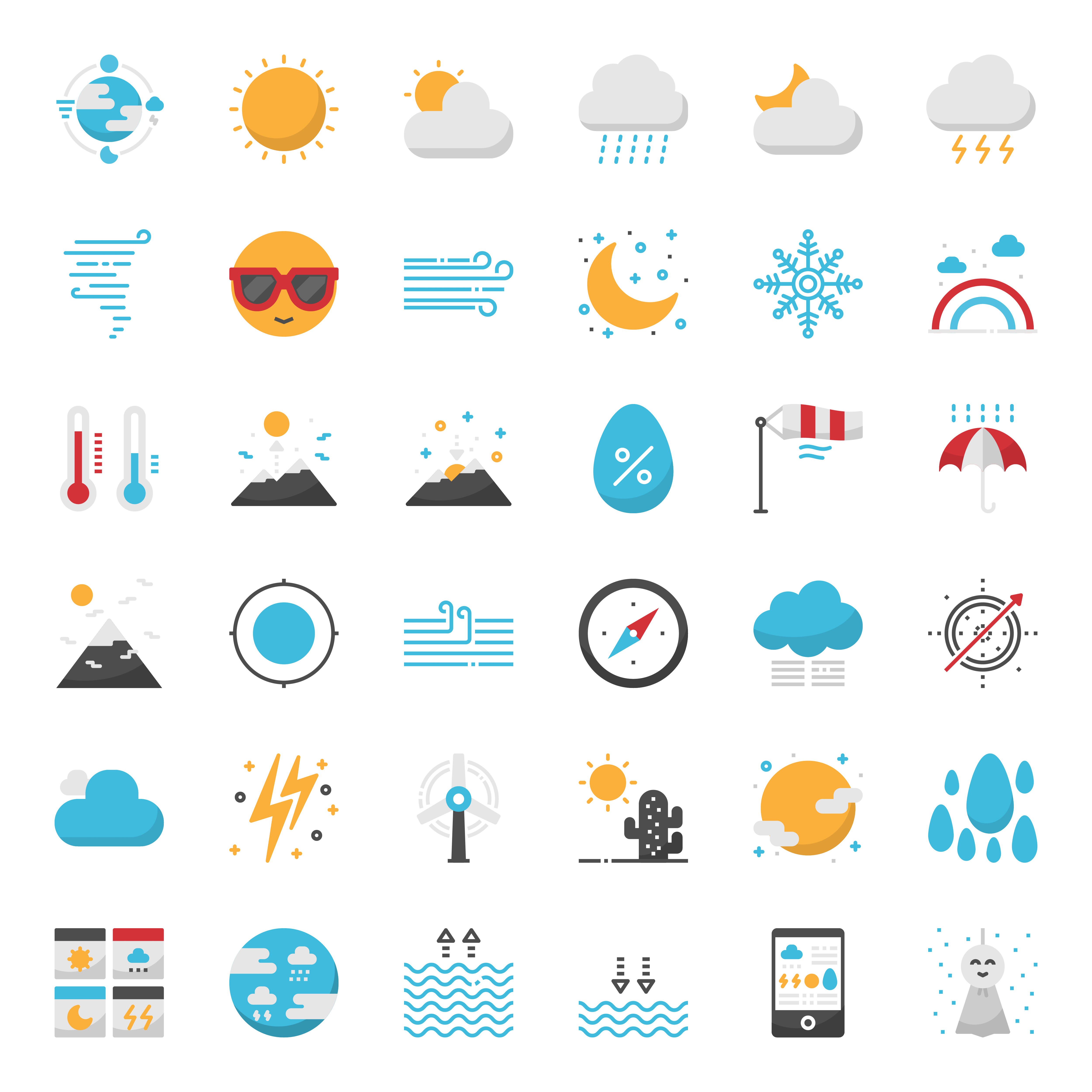 Weather flat icons color set. The best part is that all the files are ready in psd, png, svg, pdf, and ai formats. Learn to predict weather conditions such as clear skies, winter storm developing, mostly cloudy, chance of light rain and more. These icons are easy to access through iconscout plugins for sketch, adobe xd, illustrator, figma, etc. The following weather icons are used to represent the current weather conditions and weather forecast of the cities.